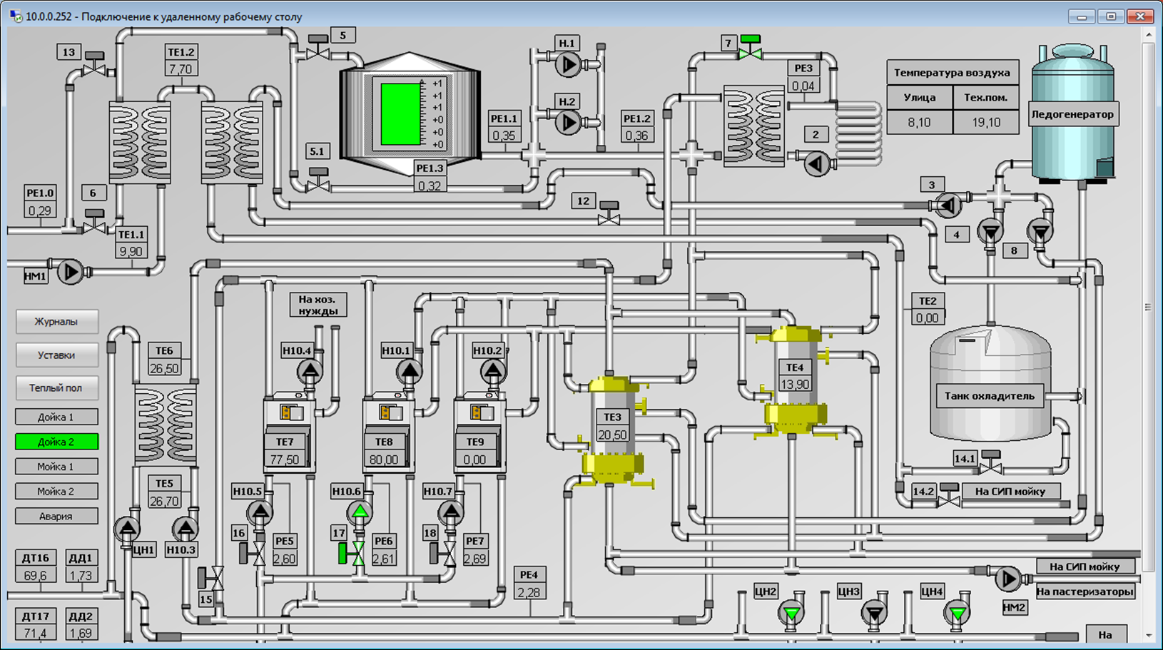 Программирование системы управления и разработка системы диспетчеризации процесса пастеризации и охлаждения молока.
